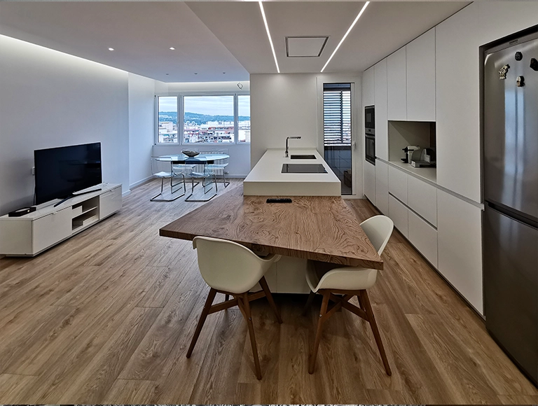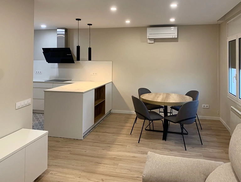 Aquest projecte va transformar la cuina, el bany i el menjador en un espai modern i funcional.
