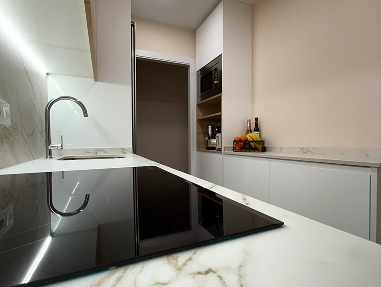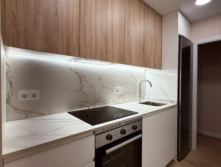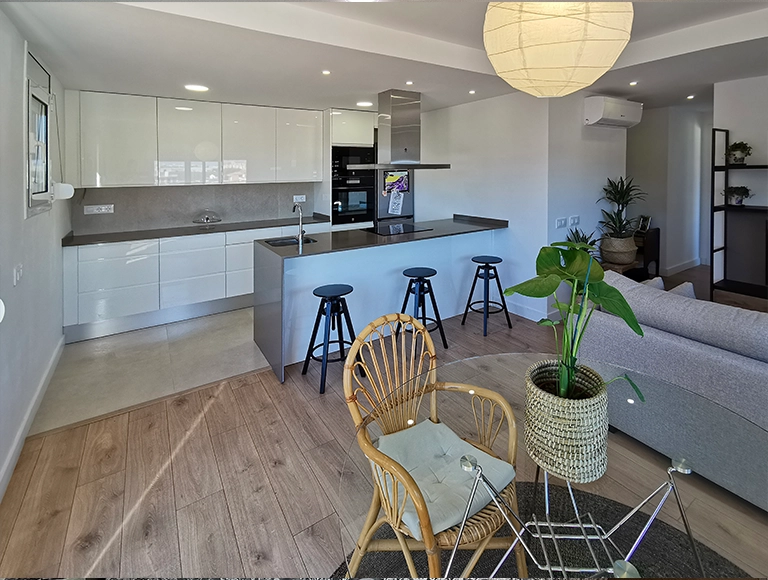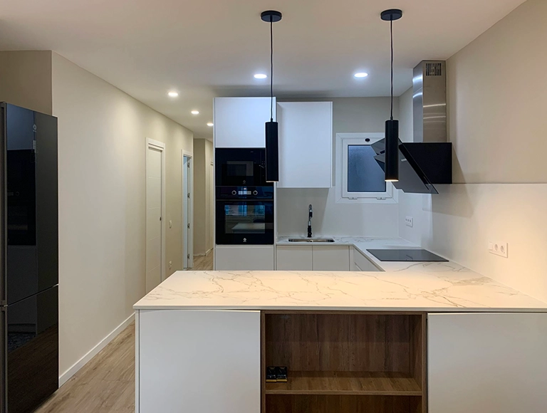 En aquesta reforma parcial de cuina i bany a Badalona, transformem dos espais clau de l’habitatge per adaptar-los a un estil actual, pràctic i confortable.