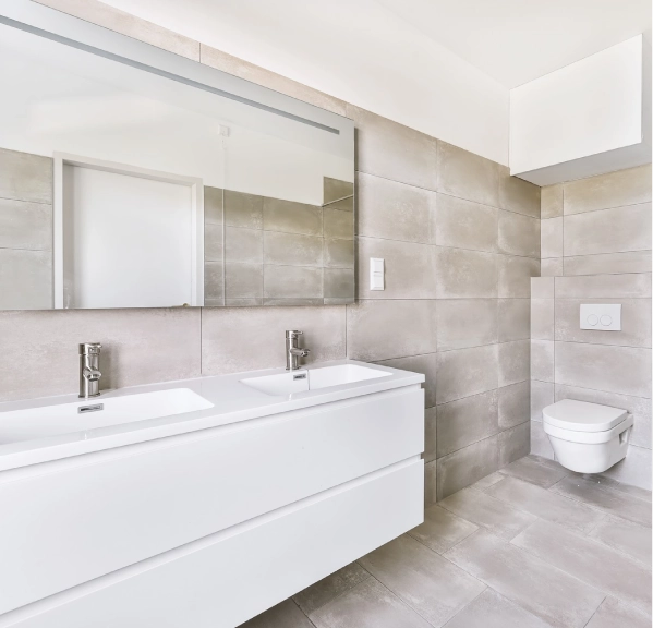 Aumenta la sensación de amplitud visual al eliminar las líneas de las juntas de los azulejos y facilita la higiene.