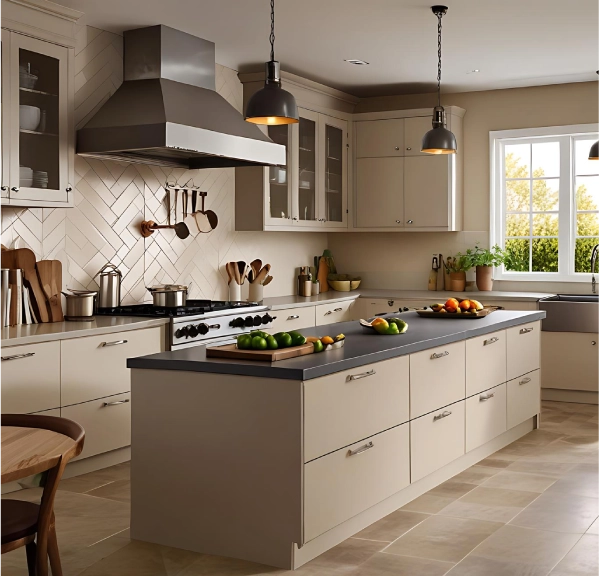 Combina el revestimiento PVC con paredes de cocina sin azulejos para un diseño más minimalista y moderno.